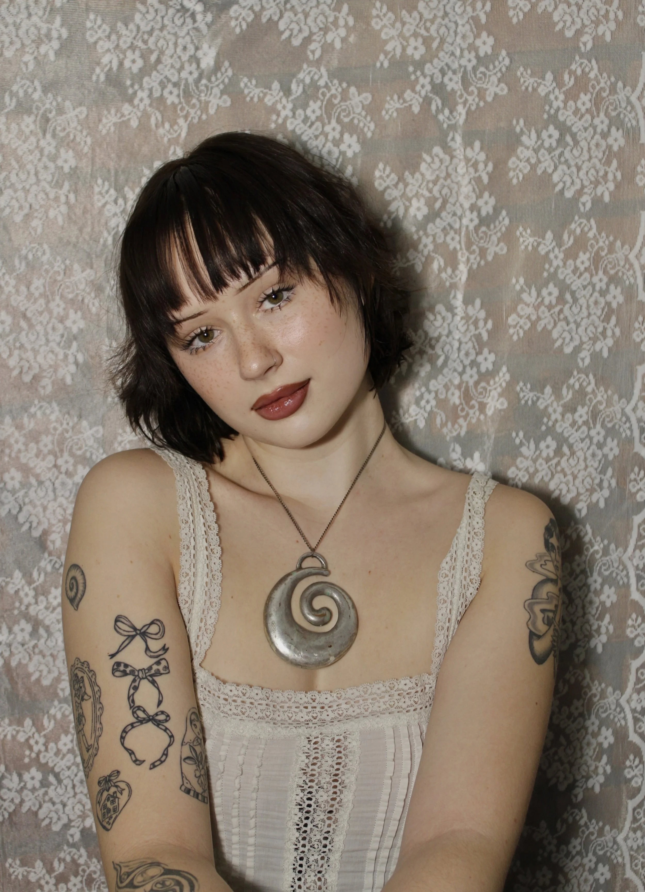 Recently, a lot of her art has been made in response to sexual assault and how the memory from girlhood to womanhood affects the physical body. She uses elements of body horror to emphasize these processes—distorted shapes, skin-like surfaces, and biomorphic forms. Her sculptures are a means of documentation—a visual reflection.